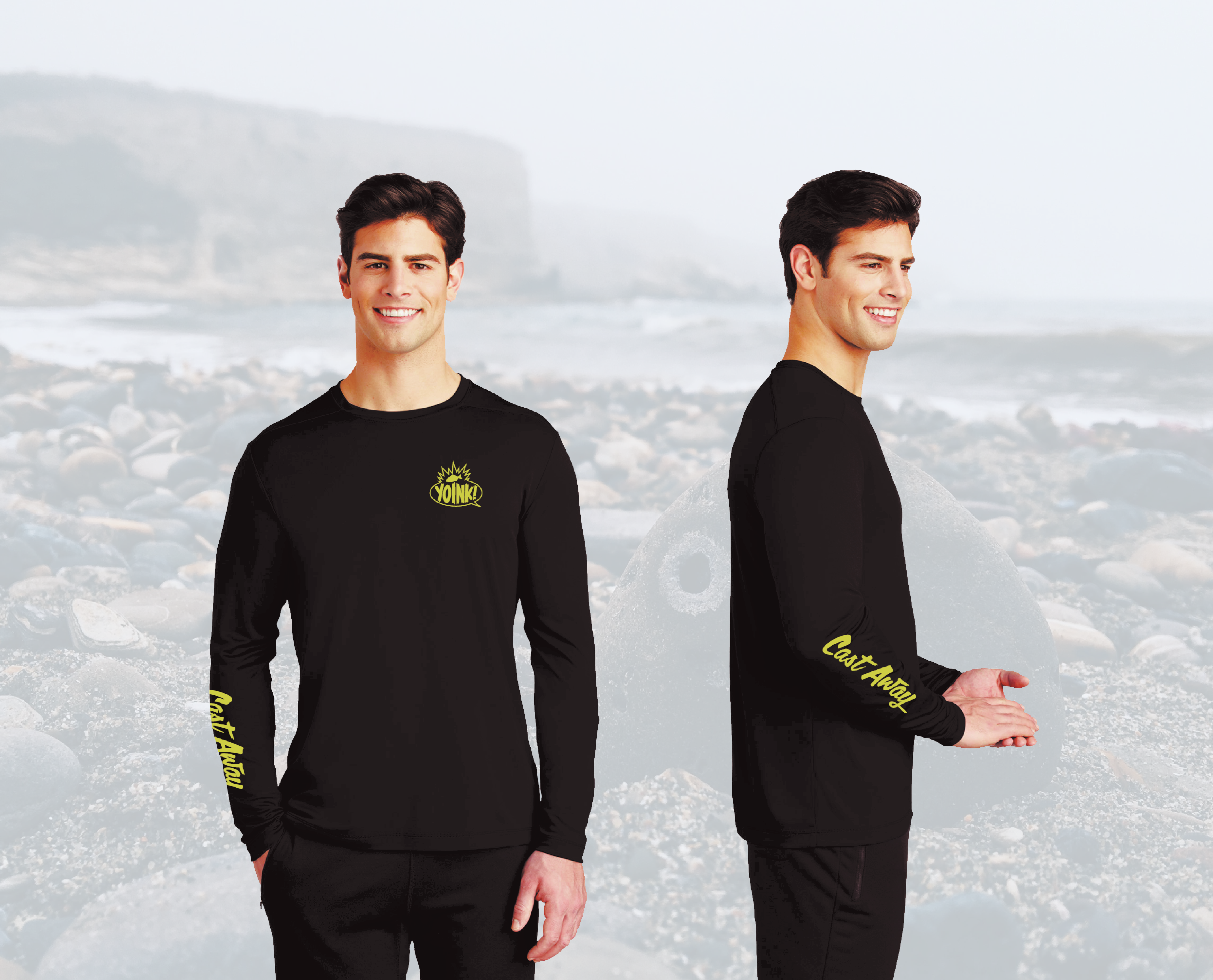 The Yoink! Cast Away Long Sleeve UV Shirt printed onto a